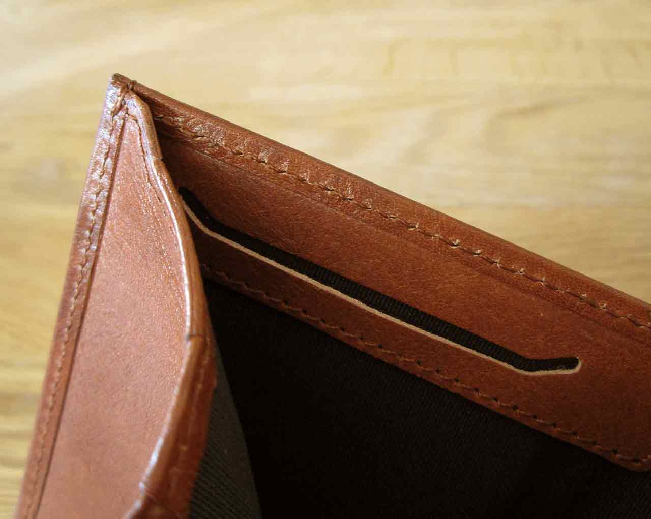Hifold Wallet är precis som alla andra produkter från Nodus tillverkade av italienskt läder av väldigt hög kvalité. Hifold Wallet skiljer sig mot Nodus andra plånböcker på det viset att det är en lite mer traditionell plånbok som man viker på mitten. Men precis som New Compact 4 Card och Compact Wallet är denna plånbok utrustad med ett material på insidan som gör att man inte skall kunna läsa av korten med en maskin, och på så vis stjäla pengar. Men det finns ett litet fack för kort som man faktiskt vill skall gå att kunna läsas av, som exempelvis passerkort eller busskort. Om du placerar ditt kort där i kan du enkelt bara placera plånboken framför läsaren så kommer kortet att läsas av, men inga andra kort i plånboken kommer gå att läsas av. Jag använder även detta fack till att förvara mina visitkort i.