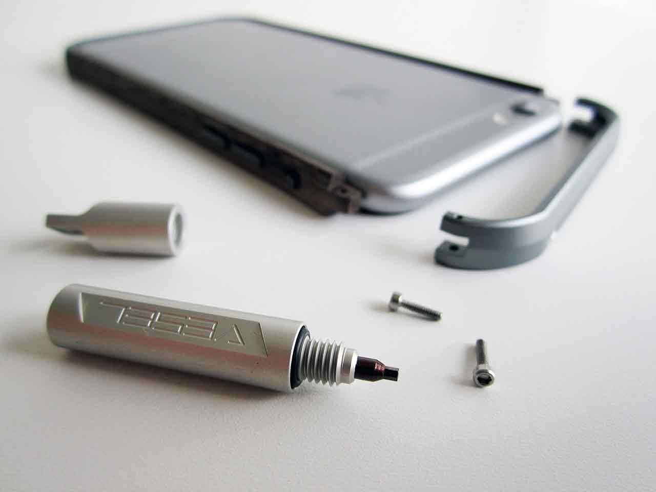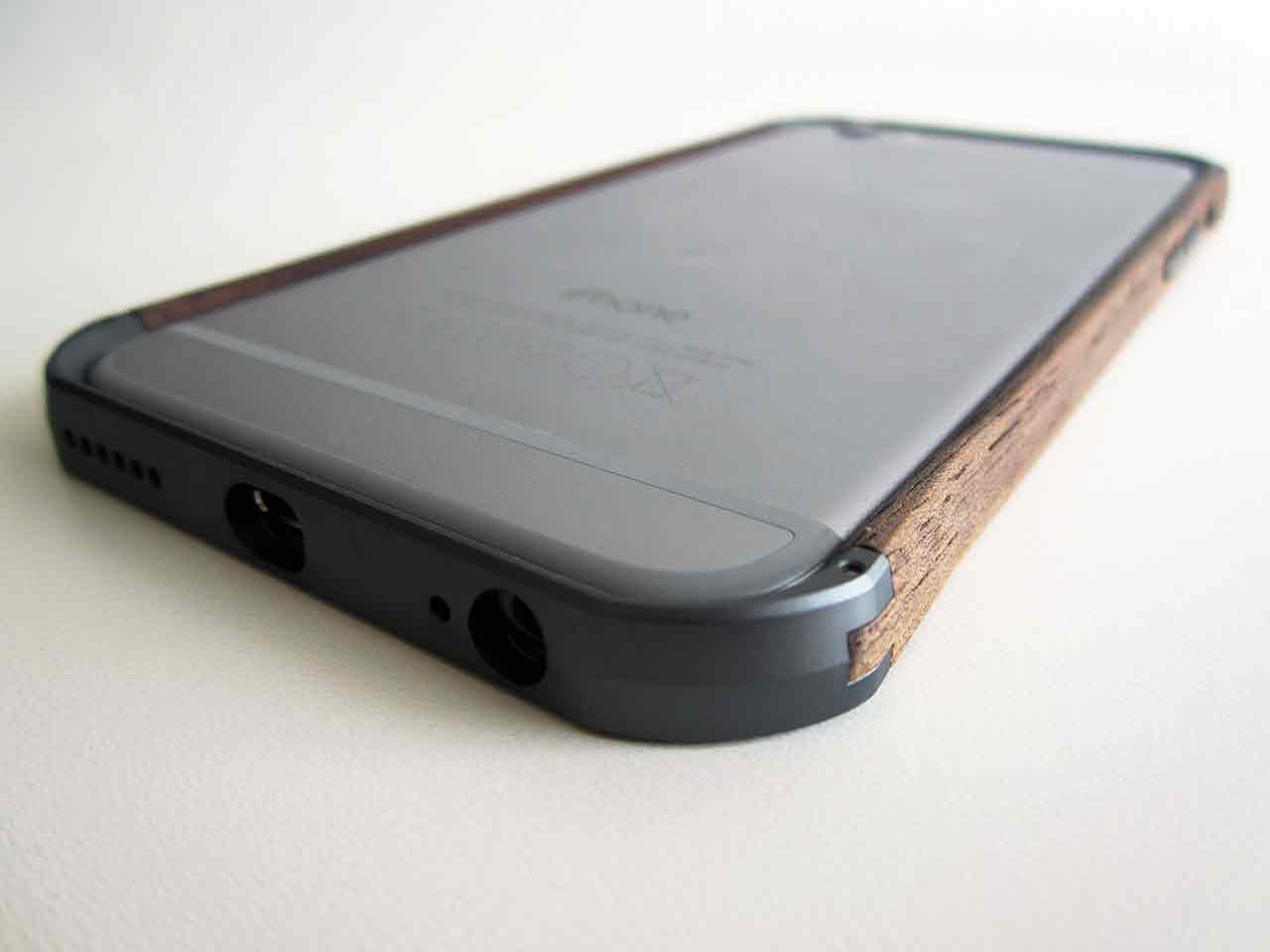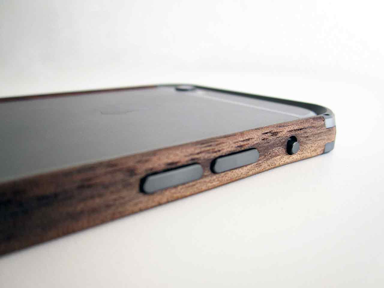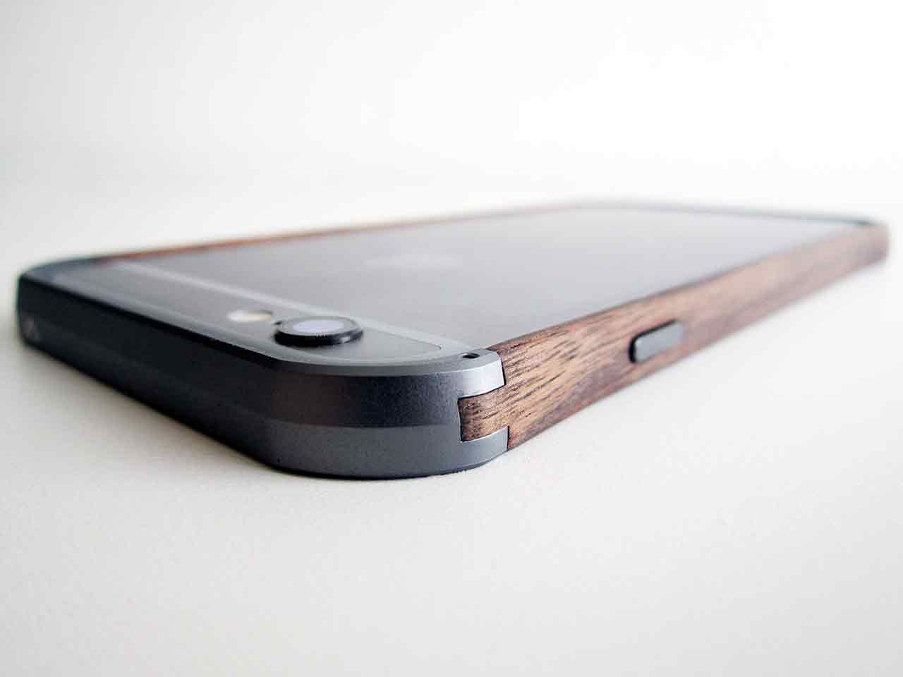 Bumpern hålls samman av fyra små skruvar som är placerade i toppen och botten. I förpackningen får man med en liten skruvmejsel som man kan använda sig av för att skruva fast skruvarna med. Du kan fästa den lilla skruvmejseln på nyckelringen, så du alltid kan bära med dig den, om du nu känner att du alltid vill ha möjligheten att öppna upp din bumper. Sidorna av bumpern är gjorda av valnötsträ, medan botten och toppen är av aluminium.