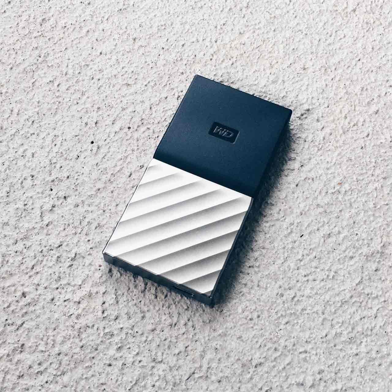 Enligt Western Digital skall My Passport SSD klara av ett fall på 1,98 m. Detta måste jag så klart testa, så jag mätte upp exakt 1,98 meter i vardagsrummet och släppte My Passport SSD Rakt ner i parkettgolvet. Det blev inte någon som helst skråma på den, och efter att ha kopplat in den i min MacBook Pro kunde jag även konstatera att den fungerade felfritt.