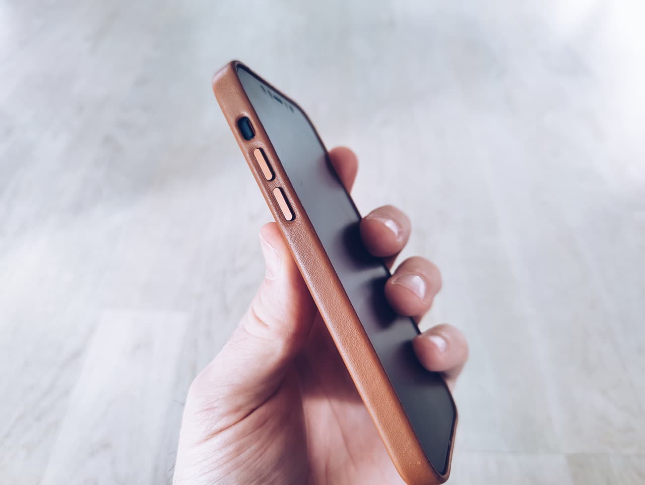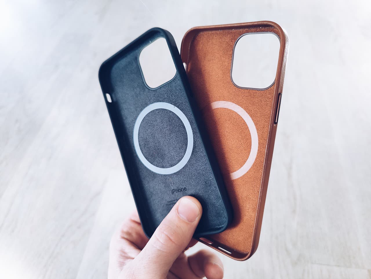 Läderfodralet jag valde var sadelbrun och silikonskalets färg var svart (det är grått på riktigt). Förutom de olika materialen så ser skalen likadana ut. Dock är passformen aningen annorlunda, men mer om det lite senare i texten. Precis som Apples tidigare silikon- och läderskal så är dessa i väldigt hög kvalitet och ser mycket bra ut. Även väldigt behagliga att hålla i. Knapparna kan jag också rapporterat om att de är fortfarande efter 3 månader väldigt klickiga. Även om skalen har MagSafe inbyggt så är det inget jag har använt mig av, så kan tyvärr inte säga så mycket om det. Jag har dock sett flera som har skrivit att det har blivit en ring på skalen efter att ha använt Apples MagSafe-laddare.