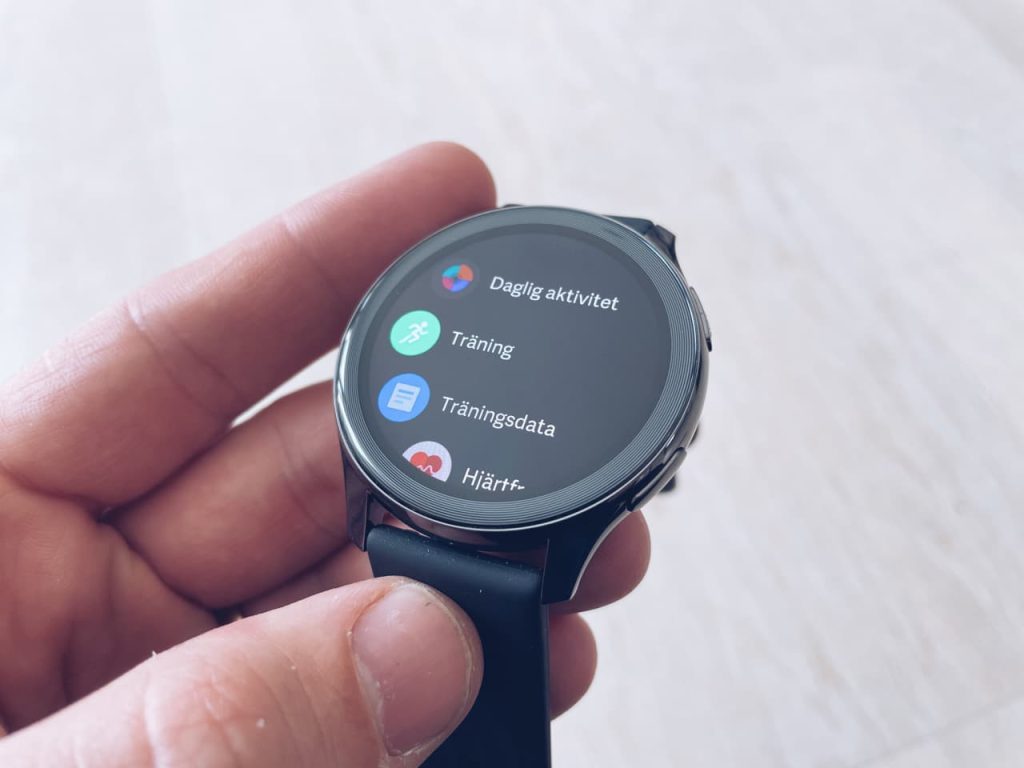 Skärmen på OnePlus Watch är en oled på 1,39 tum som är väldigt skarp och ljusstark, inga problem alls att se klockan i starkt ljus utomhus. En funktion som jag dock saknade är ”Alltid på-läget”. Precis som med Apple Watch så behöver du dock enbart lyfta upp och titta på klockan så vaknar den till liv, och du lägger handflatan över skärmen för att släcka skärmen.
