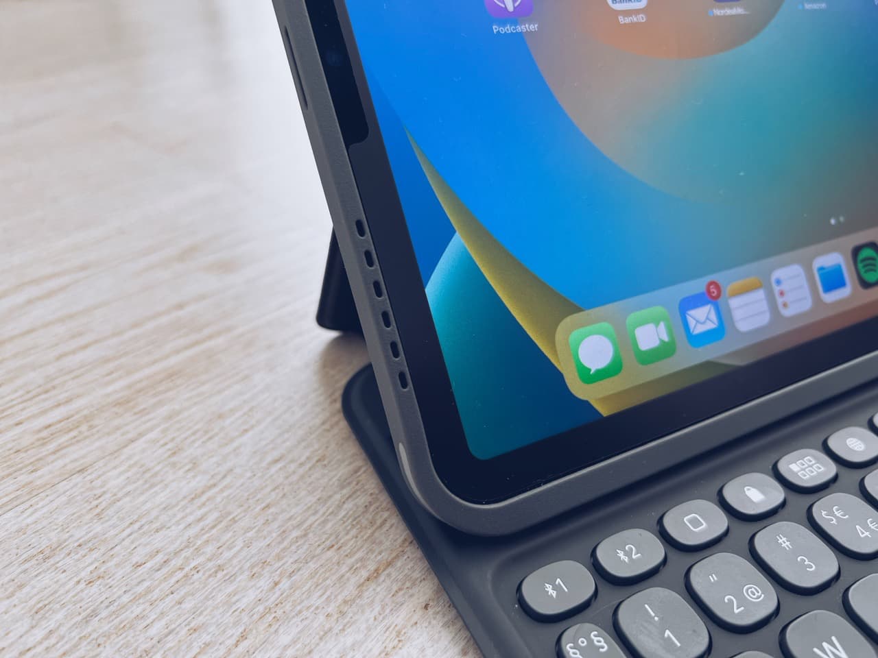 Fodralet består av två delar, det första är ett väldigt robust skal som man trycker in iPaden. På sidan av skalet finns ett fack där du kan placera din Apple Pencil, och på sidan av skalet finns det små hål som riktar om ljudet från högtalarna så de pekar framåt mot dig. Skalet kan du sedan magnetiskt placera på tangentbordet. Du kan sedan välja två olika vinklar för iPaden.